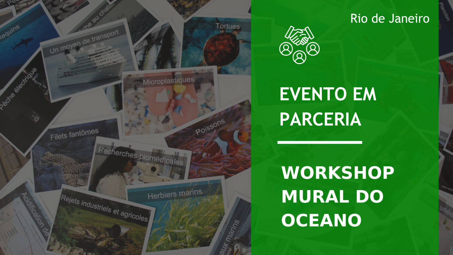 Criado na França em 2019, o Mural do Oceano (La Fresque Océane) é uma ferramenta colaborativa adotada por empresas e instituições em mais de 20 países. Utilizando dados científicos e uma dinâmica participativa com mais de 100 cartas temáticas, o workshop convida os participantes a compreender os impactos da crise oceânica e cocriar soluções para um futuro sustentável.