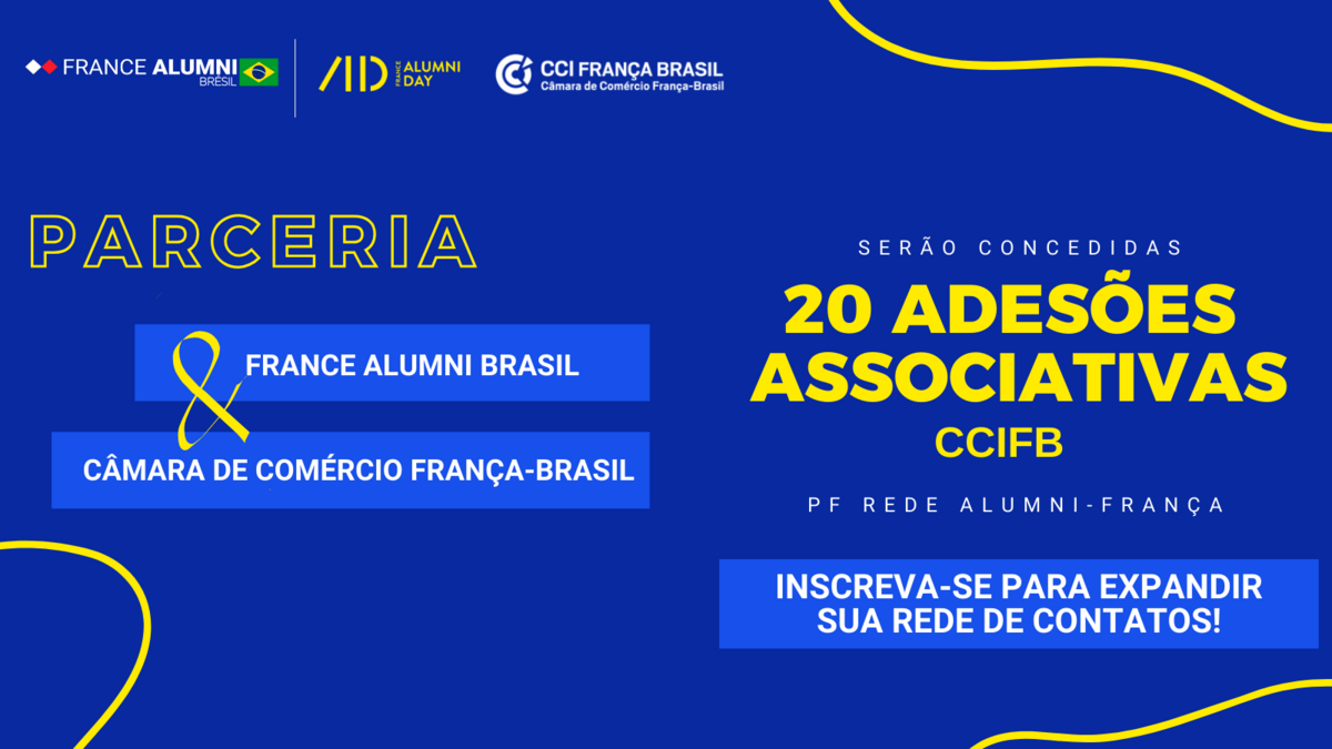 A parceria entre a CCIFB e a France Alumni oferece aos estudantes brasileiros que já estudaram na França uma oportunidade exclusiva de se conectar com uma rede internacional de profissionais e empresas, facilitando assim sua inserção no mercado de trabalho e abrindo portas para oportunidades de carreira tanto no Brasil quanto na França.