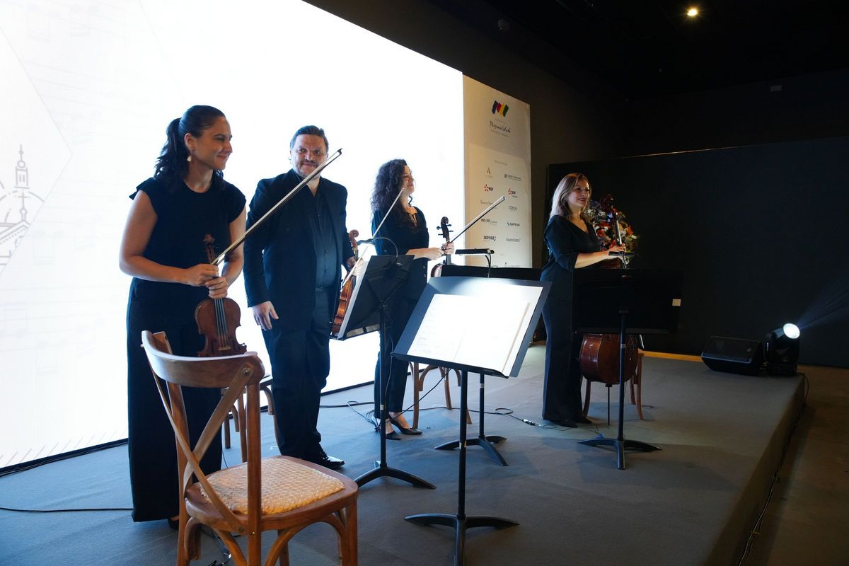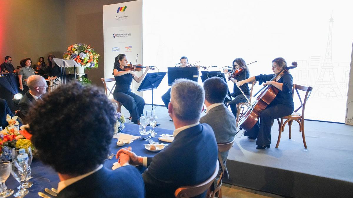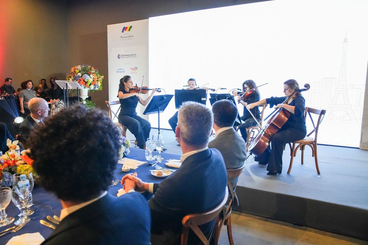 Para uma homenagem ainda mais completa, o quarteto de cordas da Orquestra Sinfônica Brasileira, formado pelos músicos Priscila Rato, Nikolay Sapoundjiev, Cindy Folly e Lisiane De Los Santos, subiu ao palco para apresentar as peças “Après un rêve”, de Gabriel Fauré, e “Noites Brasileiras”, de Luiz Gonzaga. Uma apresentação franco-brasileira para saudar a predileção do laureado pelas artes e pelos temas da cultura, exercida especialmente em suas atividades como Presidente do Conselho de Administração da Ópera de Paris, desde 2018.