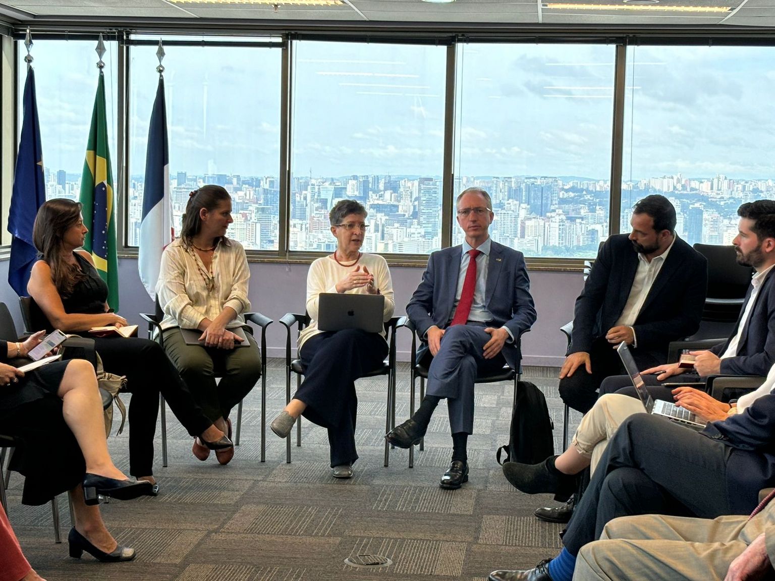 A CCIFB-SP recebeu na sexta-feira, 25 de outubro, o evento “Saison France-Brésil 2025 - Projetos selecionados e oportunidade de apoio por meio de leis de incentivo”, com a presença de François Legué, Conselheiro de Cooperação e Ação Cultural da Embaixada da França no Brasil; Paloma Garcia, Gerente de Patrocínio do Institut Français de Paris; Patrice Pauc, Adido de Cooperação e Ação Cultural do Consulado da França em São Paulo, e da produtora cultural Patrícia Galvão, da Ponto Produção.Foram apresentados os projetos pré-selecionados para essa importante ocasião e explicadas algumas modalidades de apoio de leis de incentivo fiscal, em âmbito nacional, estadual e municipal.