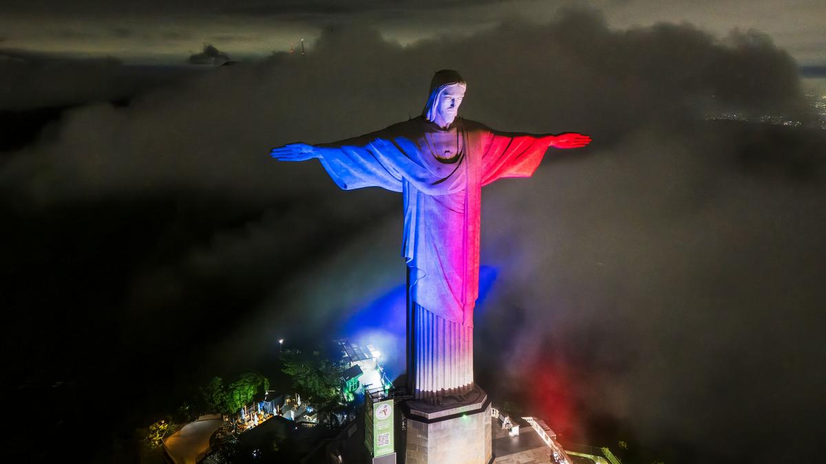 Cristo Redentor ganha cores da bandeira francesa em homenagem aos 125 anos da Câmara de Comércio França-Brasil