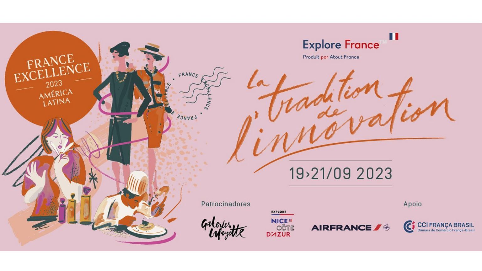 As empresas associadas à Câmara de Comércio França-Brasil (CCIFB), Air France, Accor, Lacoste e LVMH, irão participar da 3ª edição do France Excellence – La Tradition de L’innovation, que ocorre hoje, 19 de setembro, no Rosewood (SP). O evento está sendo promovido pela Atout France e conta com o apoio da CCIFB.