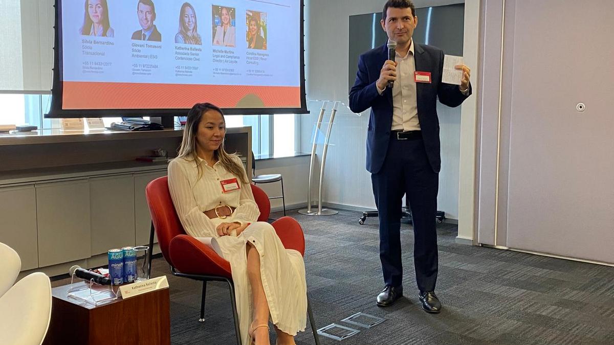 Os palestrantes convidados foram Silvia Bernardino, Katherina Ballesta e Giovani Tomasoni, do Trench Rossi Watanabe Advogados; Michelle Maximiano Martins, da Air Liquide Brasil; e Carolina Hasegawa, da Rever Consulting.