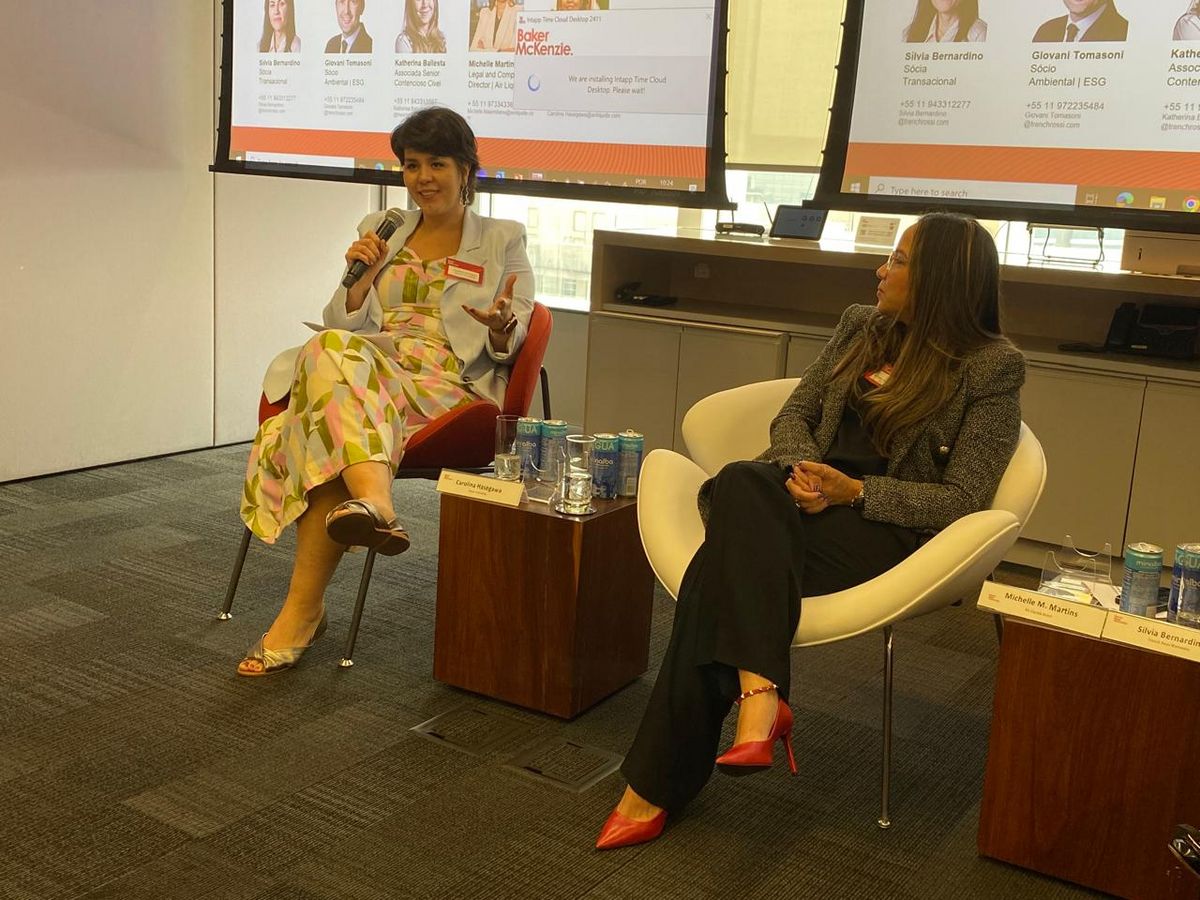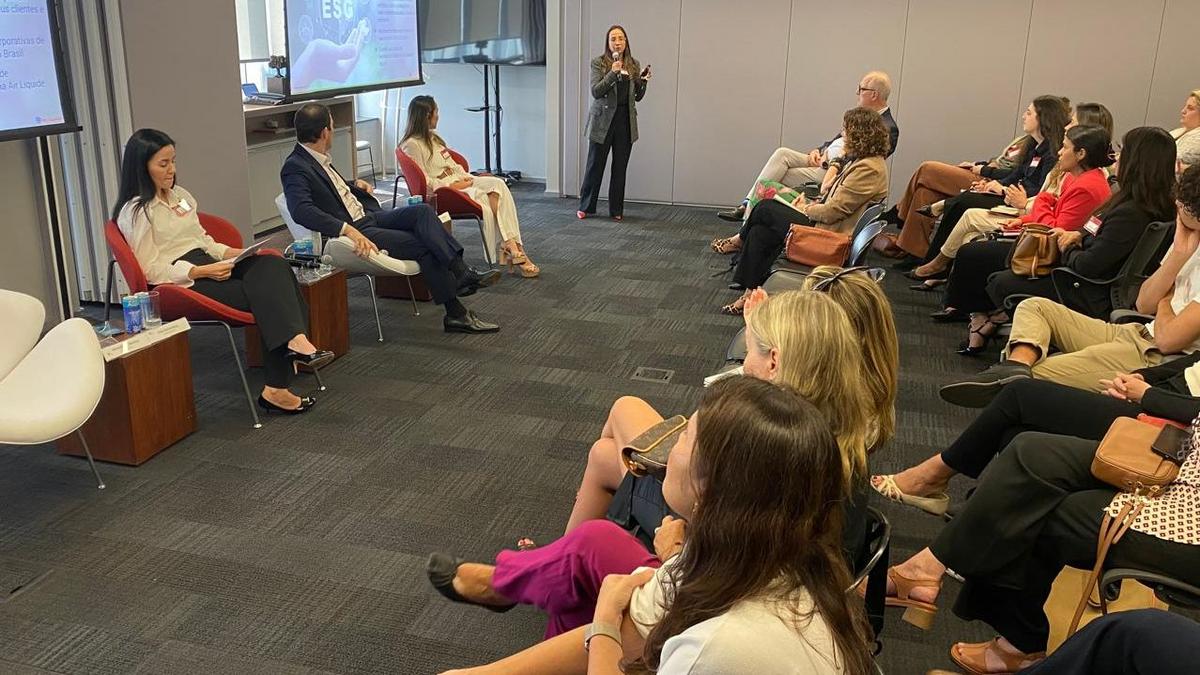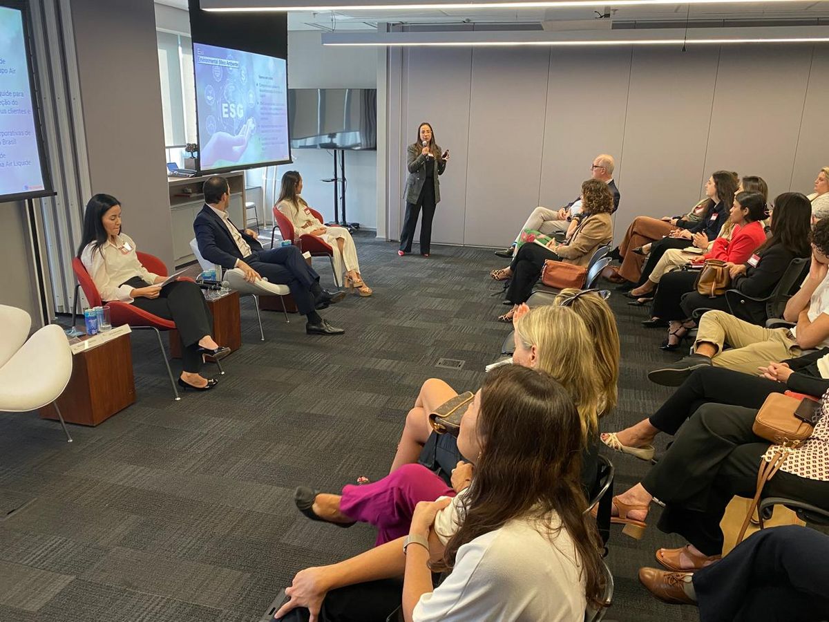 Michelle Maximiano, Diretora jurídica e de compliance da Air Liquide, compartilhou as iniciativas da empresa para reduzir as emissões de CO2, como o uso de empilhadeiras e caminhões elétricos, além da transformação de biogás em biometano. "Estamos buscando fontes renováveis de energia para criar um produto mais verde, não só para o meio ambiente, mas também para nossos clientes”, afirmou. Ela também destacou o engajamento da empresa em promover inclusão e diversidade por meio de programas internos, como um que incentiva a contratação de mulheres nas operações, e outro que apoia a melhoria das condições de moradia nas comunidades locais, por exemplo.