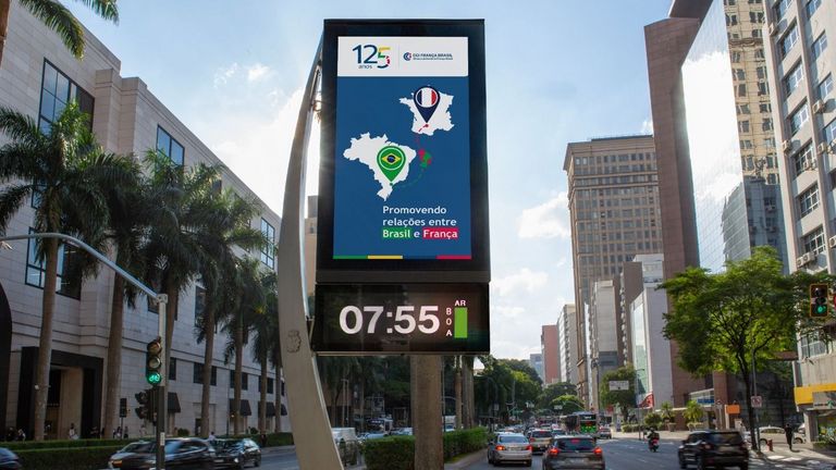 Relógios de rua em SP exibem arte pelos 125 anos da CCIFB, em parceria com a JCDecaux, líder em mídia exterior.